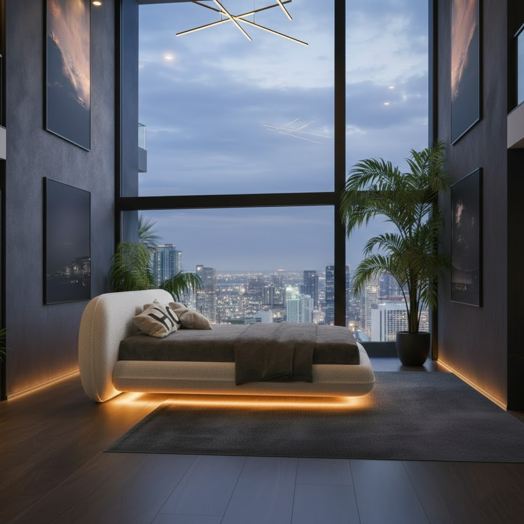 Antrium’a Özel Oval Hatlı Tasarım Bu modelde kullanılan oval hatlı tasarım dili, Antrium Yatak markasına özgü bir karakter taşır. Yumuşak geçişler ve dolgun formlar, hem konfor algısını güçlendirir hem de mekânda güçlü bir tasarım kimliği oluşturur. Kütlesel ama zarif yapısı sayesinde yatak odasının merkezinde estetik bir odak noktası haline gelir.