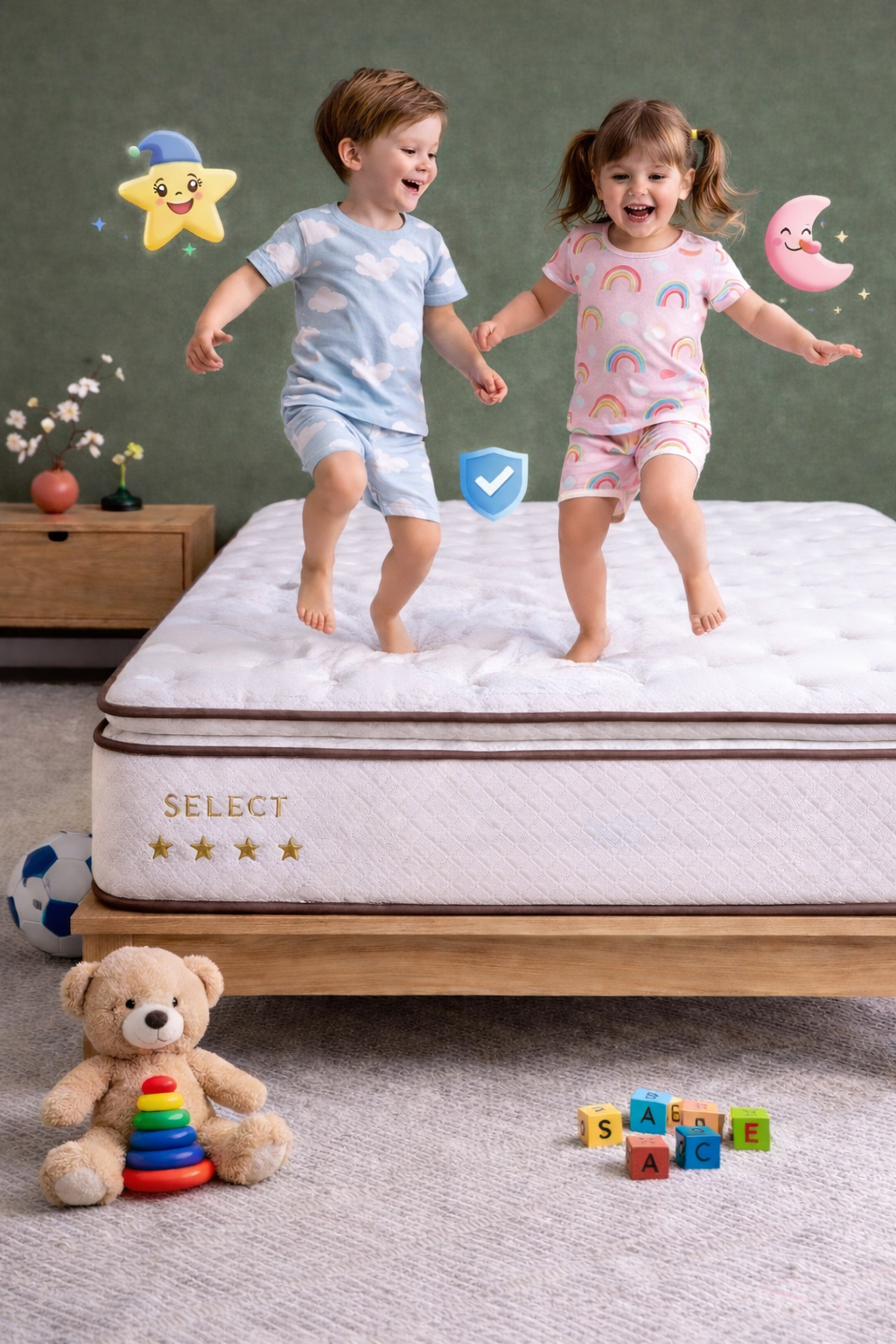Çocuklar uykuda çok hareket ederler. “Hafızalı Sünger” (Memory Foam) ve “Basınç Dengeleyici” katmanlar, çocuğun ağırlığını